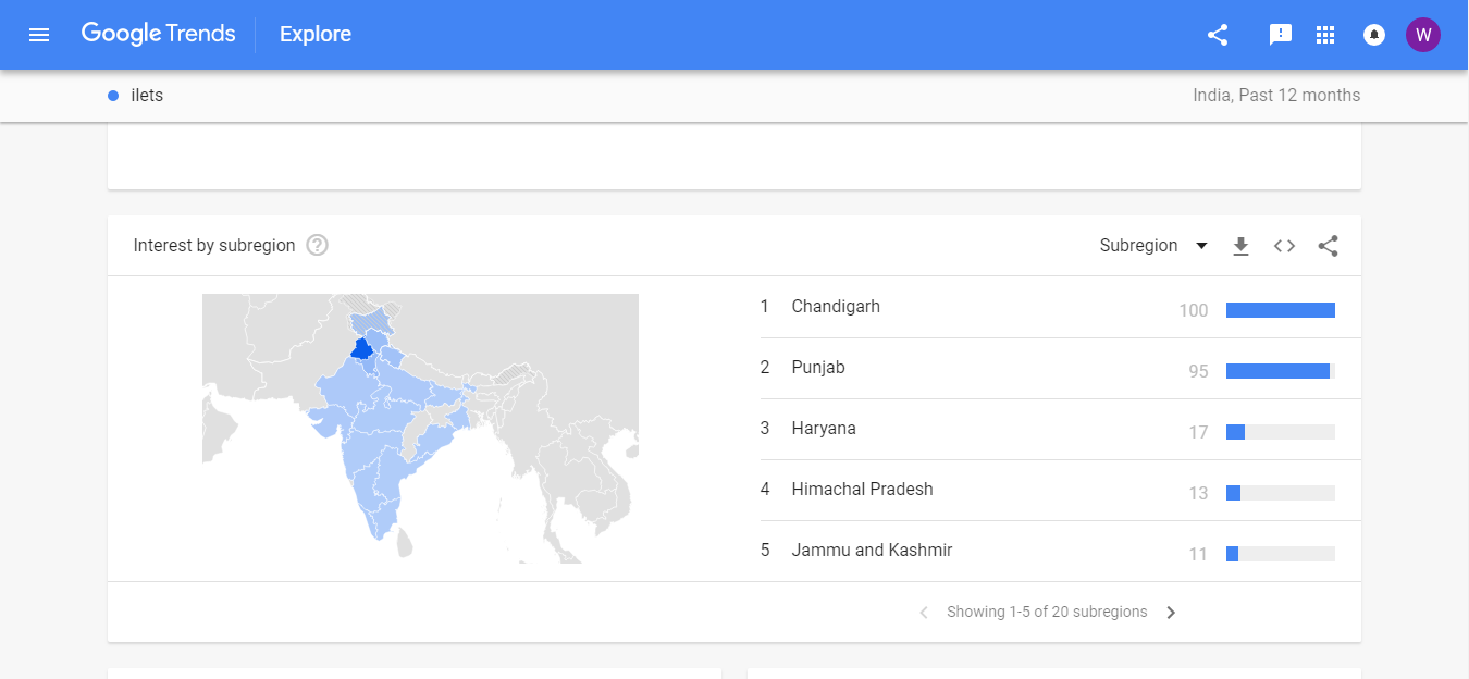 Most of the people in India and only 100% people search record in Punjab ilets Key word